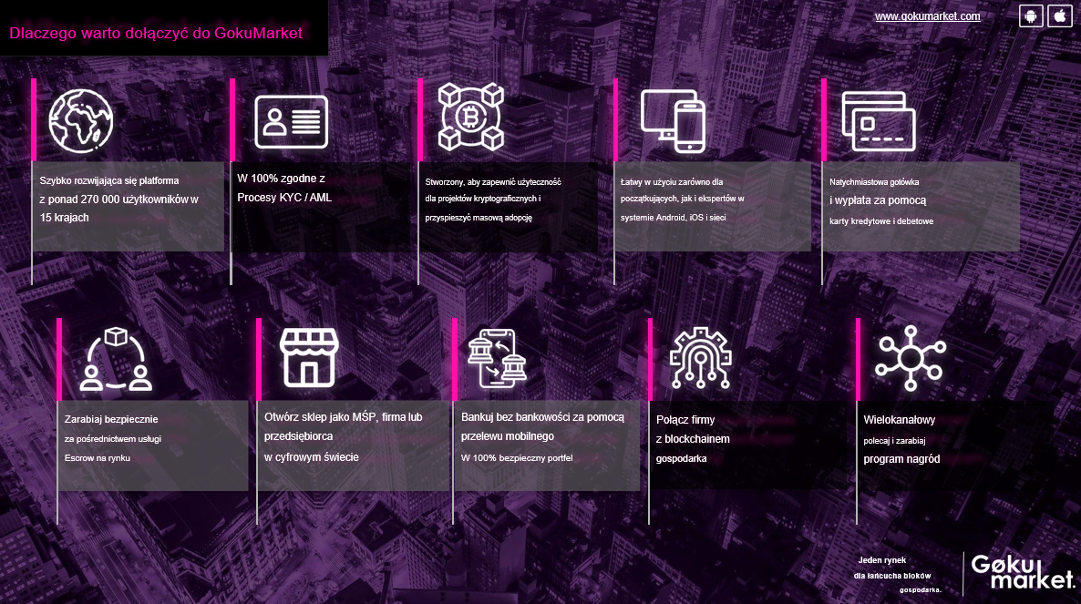 Bardzo interesującym przykładem jest platforma internetowa tworząca jeden rynek dla całej gospodarki blockchain, tą platformą jest GokuMarket gdzie każdy, ale to każdy, począwszy od nowicjuszy stawiających pierwsze kroki w świecie kryptowalut aż po firmy domowe i startupy, które się tokenizują lub już mają swój żeton. Każdy znajdzie tam miejsce na użyteczność swoich produktów z zastosowaniem w ekonomii blockchain.