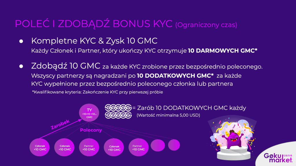 GMC (Goku Market Credit) można wykorzystać na platformie GokuMarket, na której oprócz giełdy kryptowalut jest też platforma handlowa, gdzie można kupować i sprzedawać praktycznie wszystko za kryptowaluty.